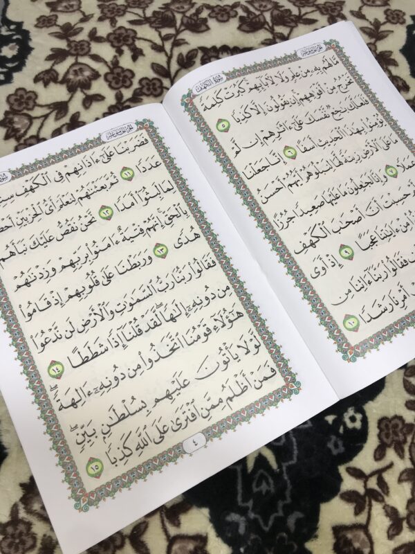 مصحف سورة الكهف بطباعة فاخرة ومقاس كبير 20×28 سم بخط واضح ومريح جدًا للعين، مناسب لكبار السن وضعاف النظر، ليسهل عليهم قراءة السورة بتدبر وراحة تامة.